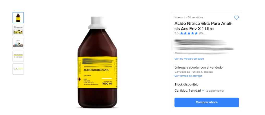 Además, entre las diversas sustancias químicas de “venta libre” en plataformas web, se encuentran muchos precursores cuya comercialización se encuentra regulada de manera particular, debido a la peligrosidad que su manipulación representa para terceros.