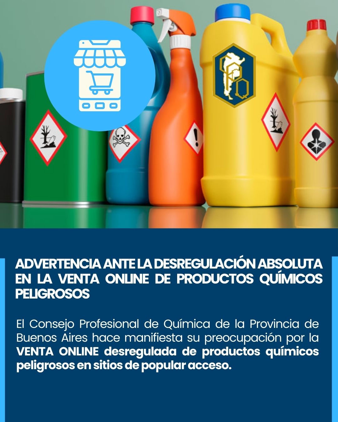 El Consejo Profesional de Química de la Provincia de Buenos Aires hace manifiesta su preocupación por la venta online desregulada de productos químicos peligrosos en sitios de popular acceso .