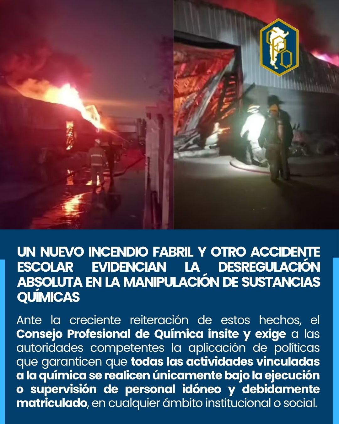 UN NUEVO INCENDIO FABRIL Y OTRO ACCIDENTE ESCOLAR EVIDENCIAN LA DESREGULACIÓN ABSOLUTA EN LA MANIPULACIÓN DE SUSTANCIAS QUÍMICAS